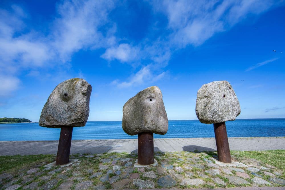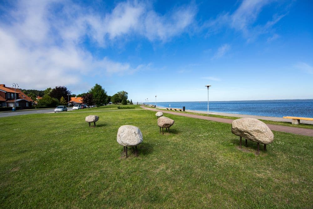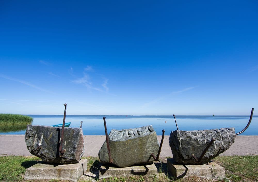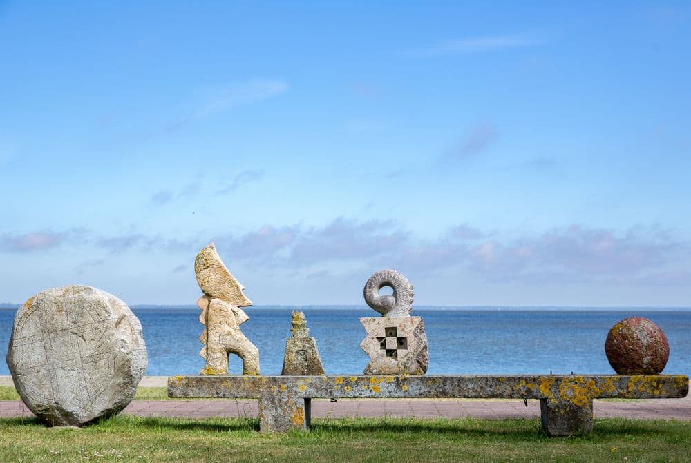 Juodkrantėje plytinčioje krantinėje, susijungia nuostabaus grožio Kuršių nerijos vandenų panorama bei žmogaus rankomis sukurtas menas. Čia stūkso akmens skulptūrų parkas po atviru dangumi, kurio eksponatai buvo sukurti tarptautinio simpoziumo „Žemė ir vanduo“ metu. 1997-aisiais metais, vietoj buvusių nendrynų, įrengta architekto Ričardo Krištapavičiaus suprojektuota pustrečio kilometro, marių kontūrus atkartojanti, krantinė ir čia sužaliavo dailios vejos bei buvo nutiesti pėsčiųjų ir dviračių takai. Iš lauko riedulių per tris metus, tarptautinio skulptorių simpoziumo „Žemė ir vanduo“ metu, menininkai iš Lietuvos, Didžiosios Britanijos, Švedijos ir kitų šalių sukūrė 31 akmens skulptūrą. Jos buvo išdėstytos 800 metrų ilgio marių pakrantės atkarpoje, vingiuojančioje palei Liudviko Rėzos gatvę...