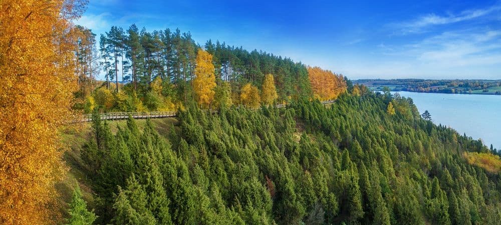 Arlaviškių kaime (Kauno r.) virš Kauno marių skardžio vingiuojantis Kadagių slėnio takas 2016 m. išrinktas gražiausiu Lietuvoje pažintiniu taku. Nuo jo atsiveria išplatėjusio Nemuno ir Dabintos salos panorama, Ronakalnio atodanga ir net 5 ha ploto unikalus Lietuvoje kadagynas, pripažintas valstybinės reikšmės gamtos paminklu. Kai kurių beveik šimtamečių kadagių aukštis siekia net 12,5 m. Pastaraisiais metais ši vieta tapo labai populiari tarp romantiškų pasivaikščiojimų mėgėjų, įspūdingų „asmenukių“ ir vestuvių fotografų. Be to, dėl ypatingų kadagių išskiriamų eterinių aliejų oras šioje vietoje yra itin tyras, natūralios medicinos žinovų teigimu, net gydantis. Todėl rekomenduojame lankantis čia neskubėti ir neapsiriboti vien gražiu panoraminiu vaizdu. Nuo šlaito matomoje Dabintos saloje...