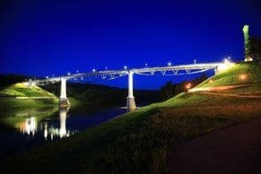Aukščiausias Lietuvoje pėsčiųjų ir dviračių tiltas pastatytas 2015 m. ant išlikusių buvusio geležinkelio tilto taurų, įrašytas į Lietuvos rekordų knygą. Jo aukštis – 38,1 m, ilgis – 260 m. Projekto autorius - V. Karieta. XIX a. antroje pusėje stiprinant vakarines Rusijos imperijos (tuo metu Lietuva priklausė jos teritorijai) sienas, į Alytų, kaip III klasės tvirtovę, buvo nutiestas karinis geležinkelis. Šioje vietoje 1897–1899 m. pastatytas novatoriškos gembinės konstrukcijos tiltas (projekto aut. N. Beleliubskis), kurio aukštis – 33 m, ilgis – 240,5 m. Tilto važiuojamoji dalis buvo skirta traukinių ir vežimų eismui. Pirmojo pasaulinio karo metu, 1915 m., besitraukianti caro kariuomenė tiltą susprogdino. Alytų užėmę vokiečiai jo vietoje pastatė laikinąjį medinį karinį geležinkelio tiltą. ...