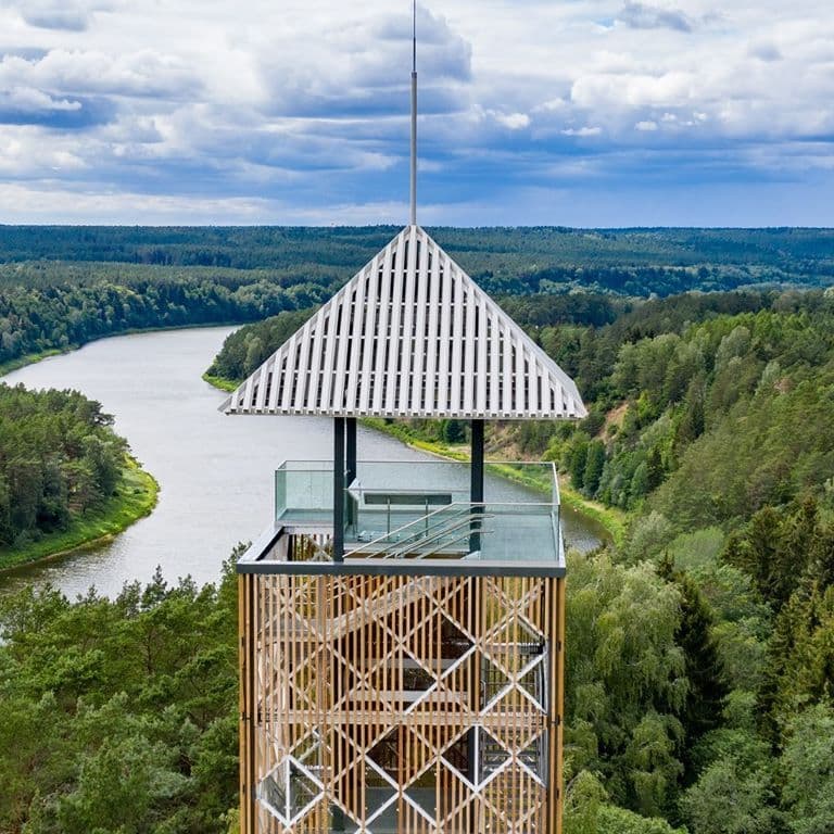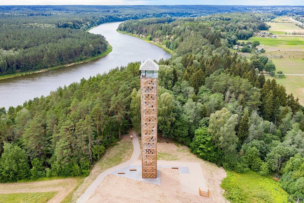 Birštono apžvalgos bokštas – aukščiausias bokštas Lietuvoje. Bokšto vieta buvo parinkta dar 1997 metais, kai Lietuvos Respublikos Vyriausybė patvirtino Nemuno kilpų regioninio parko planavimo schemą. Planavimo schema – tai pagrindinis dokumentas, nustatantis priemones šiai unikaliai teritorijai saugoti, tvarkyti ir tinkamai naudoti. Bokšto vieta parinkta ant Škėvonių gūbrio, mažai urbanizuotoje teritorijoje, 92 m virš jūros lygio. Čia už 240 metrų teka Nemunas, pietrytinėje dalyje atviras laukas, šalia miškas, matosi Birštono panorama, Nemuno slėnis, už 900 metrų driekiasi Birštono vienkiemio sodybos (dabar – Birštono miesto teritorija). Bokšto apžvalgos aikštelė – 45 m aukštyje, viso bokšto aukštis – 55 m. Kylant į bokštą, įrengtos šešios atokvėpio vietos, kadangi įveikti tokį aukštį be ...