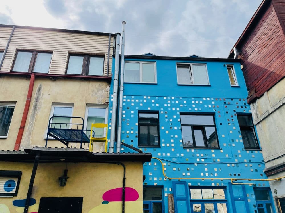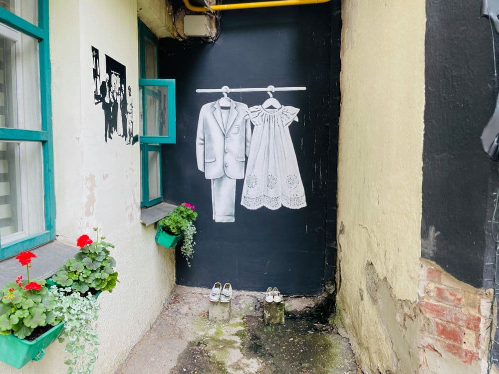 Prieš daugiau nei dešimtmetį į namą šiame kieme atsikraustęs menininkas Vytenis Jakas pastebėjo, kad kaimynai susvetimėję ir pamiršę bendrą kiemo praeitį. Čia gyvenusių žydų šeimų nuotraukas ėmęs perkėlinėti ant sienų V. Jakas sulaukė didelio palaikymo. Kieme vienas po kito randasi ir kiti objektai, savo pėdsakus palieka vis nauji menininkai, čia vyksta kaimynų šventės, nuolat užsuka turistai. Tik nepamirškite, kad čia gyvena žmonės, kurie turi teisę į ramybę.