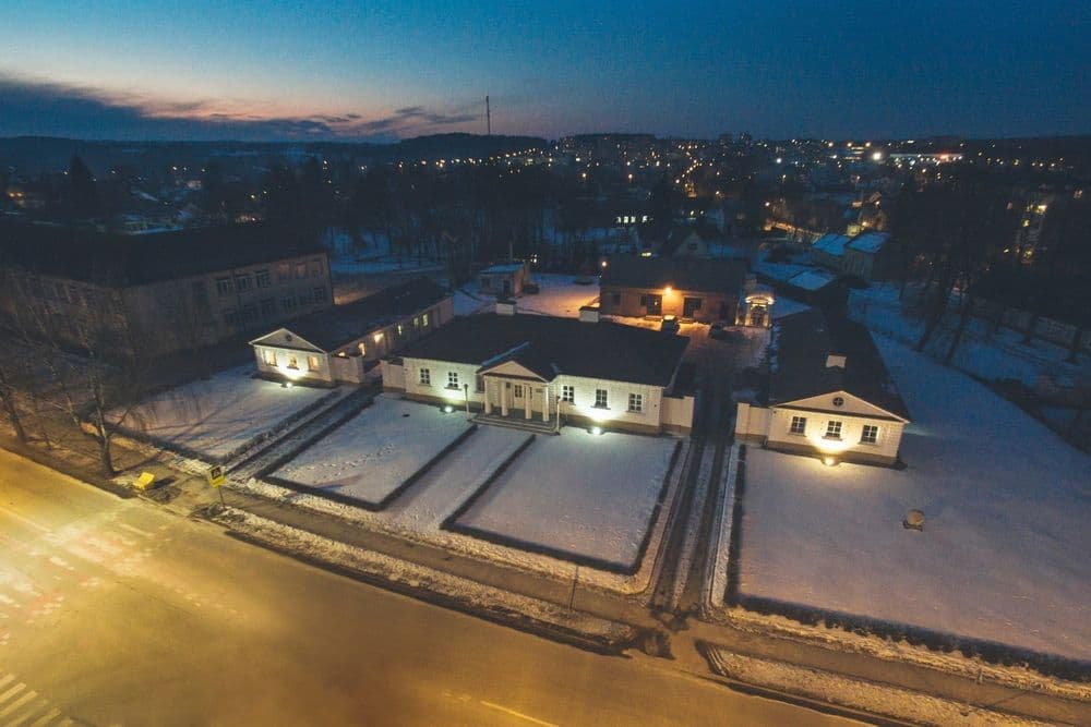 XIX a. pradžioje Rusija siekė visokeriopai įtvirtinti savo valdžią palyginti neseniai užgrobtose buvusios Lietuvos ir Lenkijos valstybės teritorijose. Be kitų priemonių tam buvo stiprinamas susisiekimas ir komunikacija tarp sostinės Sankt Peterburgo ir vakarinių šalies provincijų. Buvo tiesiama susisiekimo arterija anuomet vadinta traktu Sankt Peterburgas–Varšuva. O tuo metu nedideliam Utenos miesteliui šioje linijoje teko svarbus vaidmuo, nes jis atsidūrė pačiame trakto viduryje. Trakto linijoje maždaug kas 20–24 kilometrų buvo statomi neaukšti, tačiau, įspūdingi, grakščių saikingų klasicizmo formų arklių pašto stočių kompleksai. Jie buvo statomi didesnėse gyvenvietėse ar miestuose. Vienas tokių 1833–1835 m. iškilo ir Utenoje. Čia buvo laukiamasis, poilsio kambariai laukiantiems kariet...